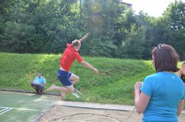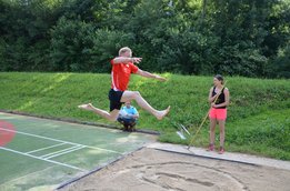 Samstag, 13.06.2015 Schon am ersten Tag konnten wir beweisen, dass wir Langenwanger halt doch noch die Langenwanger sind. Gestartet wurden die Bezirkssommerspiele mit dem Radfahren beim Uraniteich wo Michael Buchebner uns den ersten und Michael Schmid uns den zweiten Platz einfuhr! Bei den Mädels belegten Barbara und Eva Rinnhofer den zweiten und dritten Rang. Beim Fußballspielen ging es gleich stark weiter, wo die Mädels den ersten UND zweiten Platz am Podest belegten. Die Burschen machten das imaginäre Podest voll und holten uns die Bronzemedaille. Zum Abschluss des Tages mussten wir uns beim Völkerball gegen zwei Krieglacher Teams „geschlagen“ geben und erreichten Rang Drei.