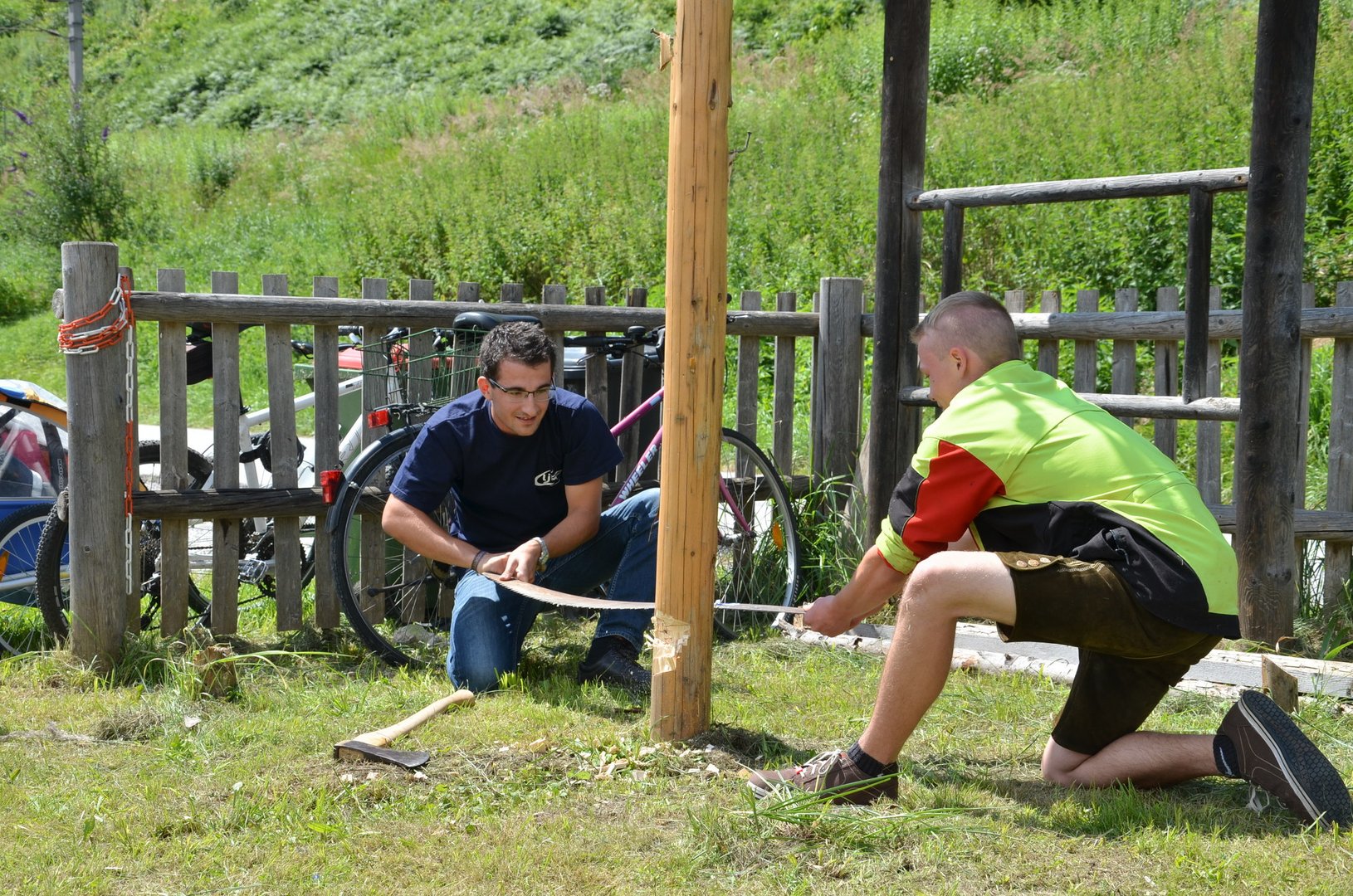 Maibaum umschneiden und Alt gegen Jung