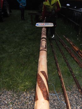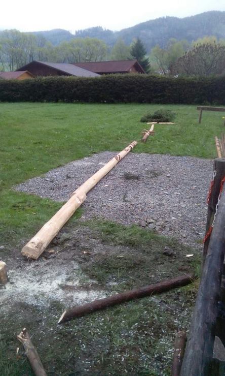 Leider gingen wir schlussendlich doch zu früh ins Bett und somit wurde unser Baum heuer zu später Stunde noch zersägt. Zwar sind wir durch die mangelnde Bewachung selberschuld, dass der Baum fiel, doch wurde er leider nicht nur umgeschnitten, sondern auch zerstückelt. Die viele Arbeit, vor allem die aufwendige Schnitzerei, war somit leider umsonst.