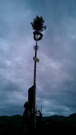 Das alljährliche Maibaumaufstellen fand auch heuer wieder bei der Hütte statt, zahlreiche Mitglieder kamen um den Maibaum zu schmücken und ihn aufzustellen. Erstmals wurde auch eine Tafel angebracht, welche von der Landesorganisation ausgeteilt wurde.