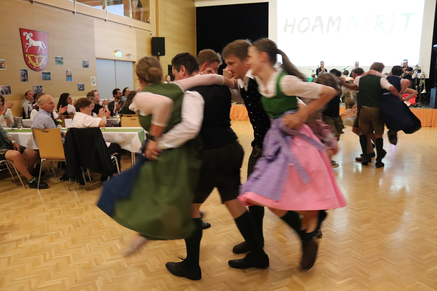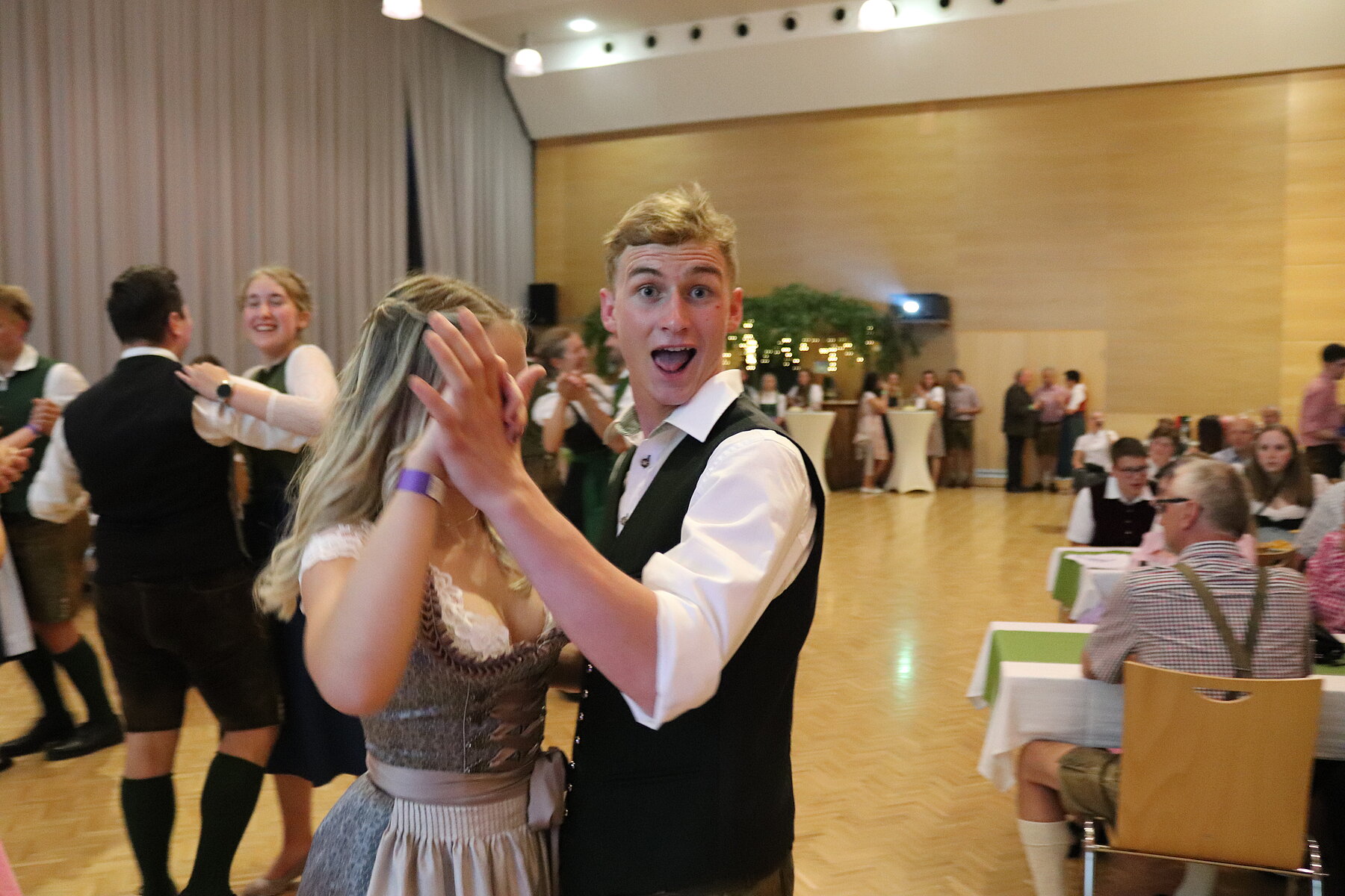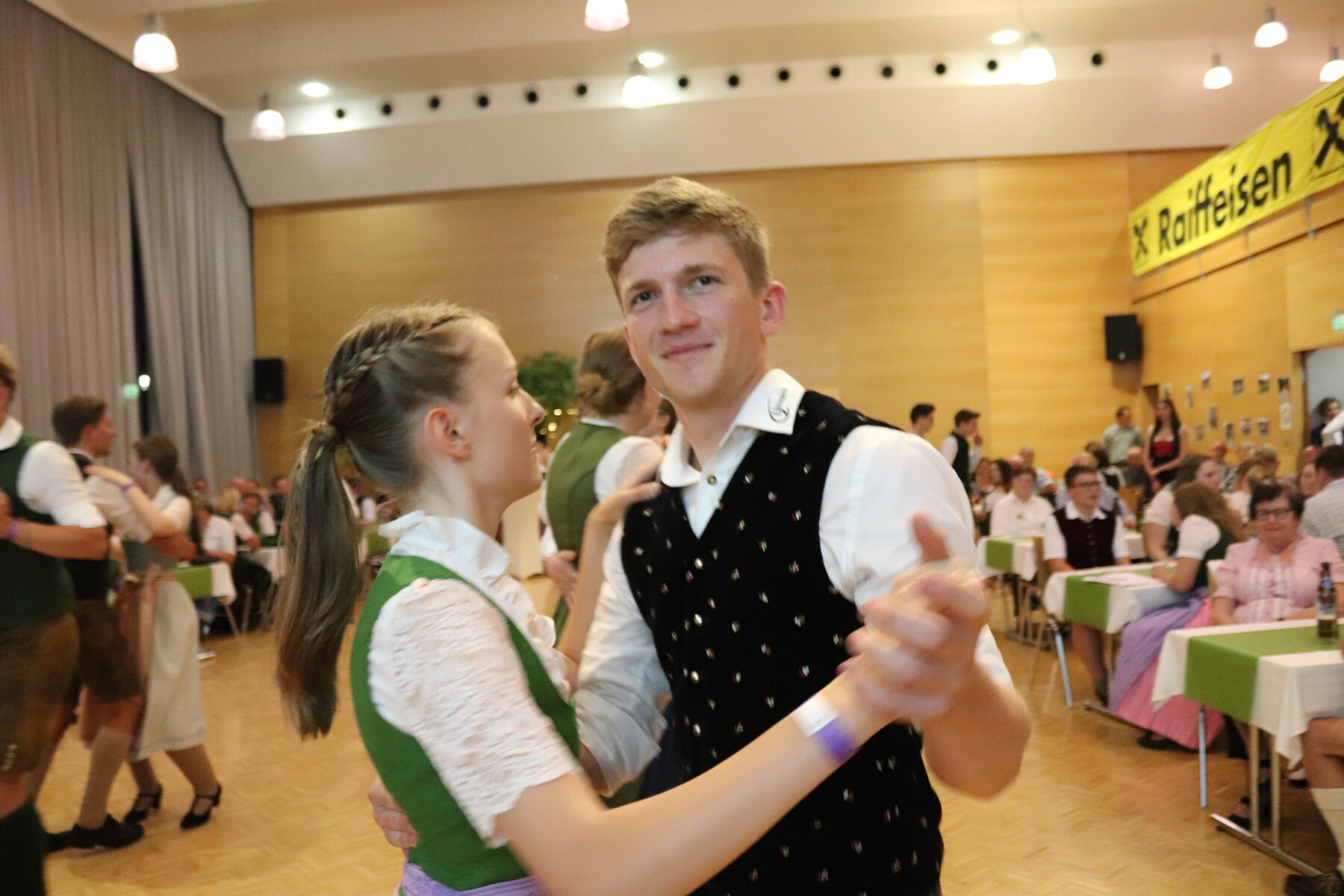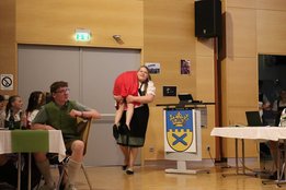 Endlich konnte unser Pfingsttanz wieder wie früher am Pfingstsonntag im Volkshaus stattfinden. Zu Beginn des Abends durften wir uns bei unserer 72. Generalversammlung über zahlreiche Mitglieder unsererseits, aber auch aus anderen Ortsgruppen und über mehrere Eltern freuen. Ein Highlight der Versammlung war der Tätigkeitsbericht, der mit kurzen Sequenzen der Pressereferenten gestaltet wurde. Zuletzt wurde der alte Vorstand verabschiedet und der neue durch die Kochshow „Frisch gekocht mit Dani und Maria“ vorgestellt.