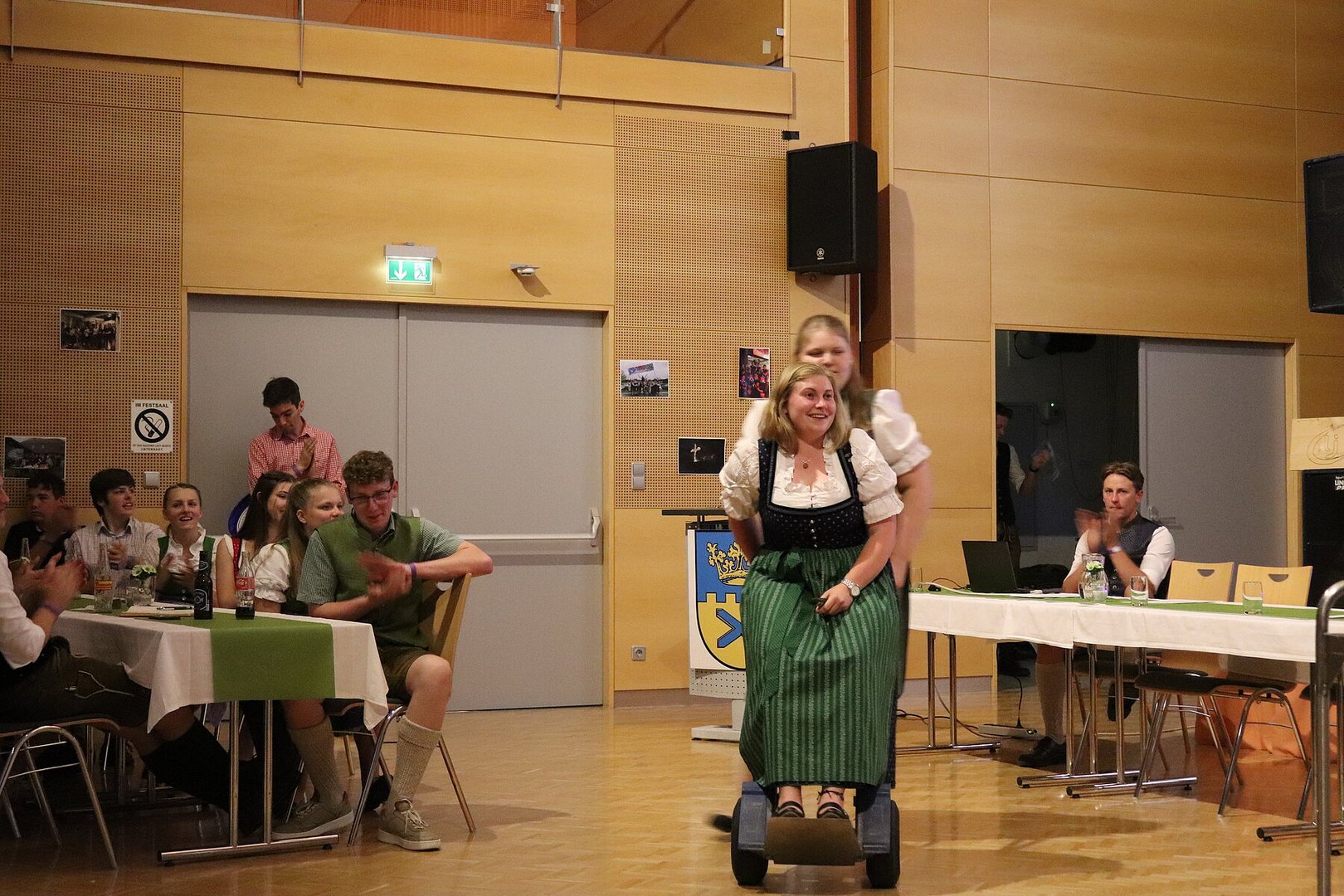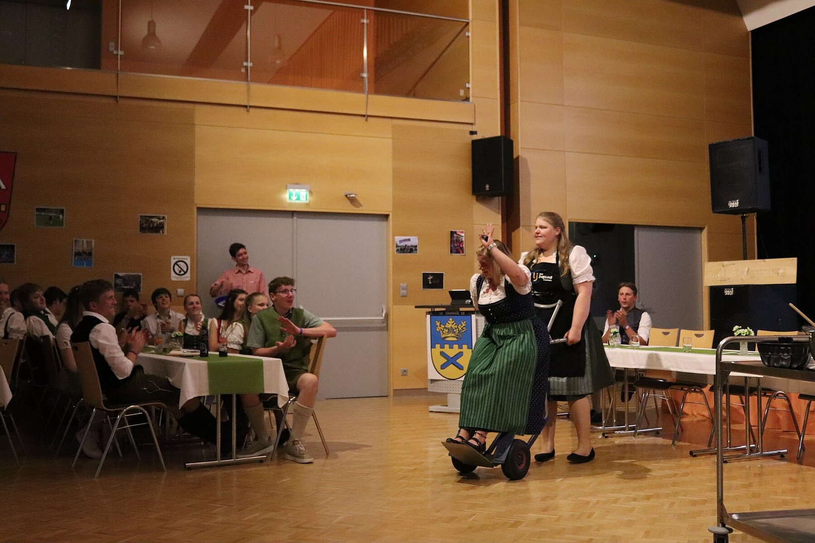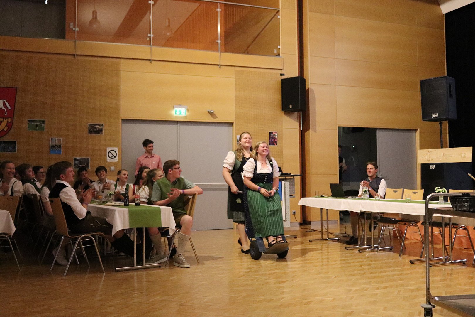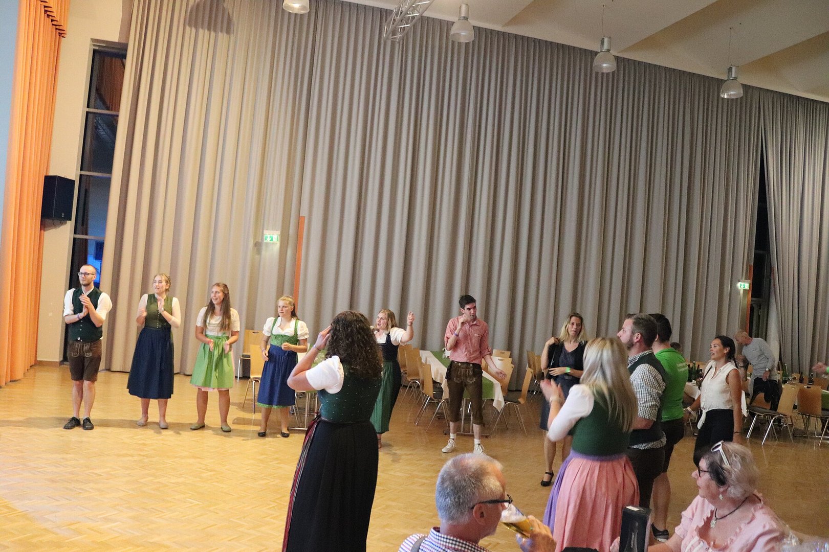 Endlich konnte unser Pfingsttanz wieder wie früher am Pfingstsonntag im Volkshaus stattfinden. Zu Beginn des Abends durften wir uns bei unserer 72. Generalversammlung über zahlreiche Mitglieder unsererseits, aber auch aus anderen Ortsgruppen und über mehrere Eltern freuen. Ein Highlight der Versammlung war der Tätigkeitsbericht, der mit kurzen Sequenzen der Pressereferenten gestaltet wurde. Zuletzt wurde der alte Vorstand verabschiedet und der neue durch die Kochshow „Frisch gekocht mit Dani und Maria“ vorgestellt.